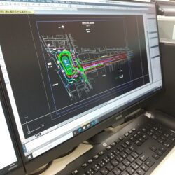 調査結果を踏まえて、まずは先輩のサポートを受けながら CAD で協議用の図面を作成します。